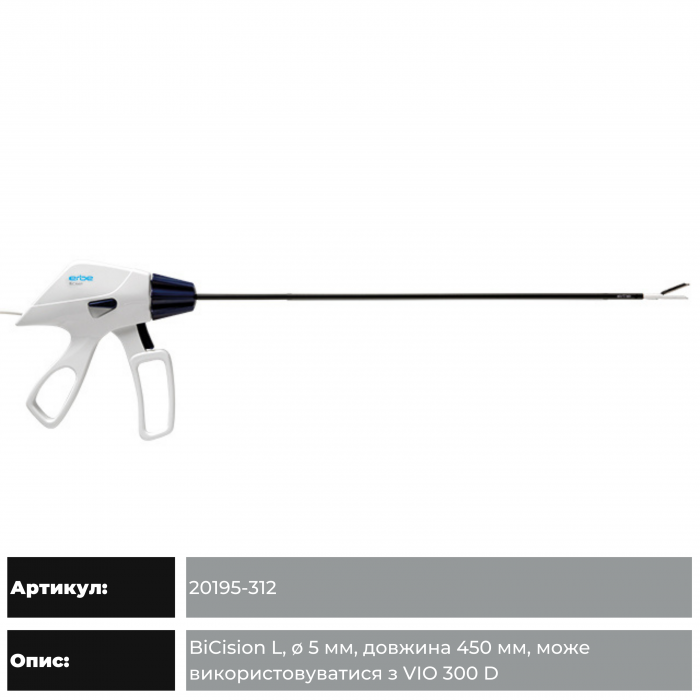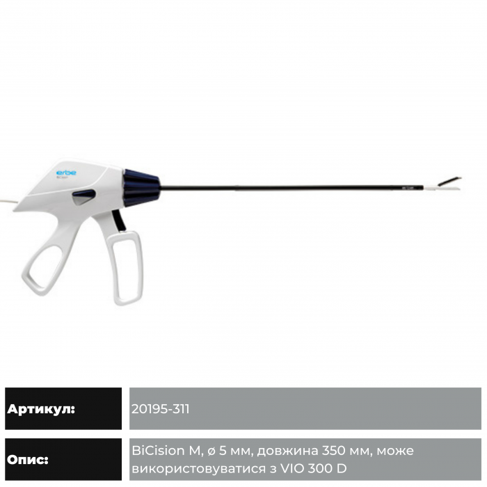 The instruments in ERBE's BiCision line can be used on open surgical tables as well as during endoscopic procedures. They provide an even cut, have a limited effect on a wide surface, and have cup-shaped handpieces that provide a larger melt area than other instruments that have a 5 mm diameter core. ERBE BiCision instruments are intended for single use and are supplied in sterile packs of 5.