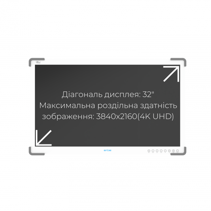 Медичний монітор 32", 4K UHD (3840×2160 пікселів), кріплення VESA – професійне рішення для використання в операційних та діагностичних кабінетах. Завдяки високій роздільній здатності 4K UHD забезпечує максимально чітке, деталізоване зображення з реалістичною передачею кольорів, що є критично важливим для точності під час хірургічних втручань та медичної візуалізації.