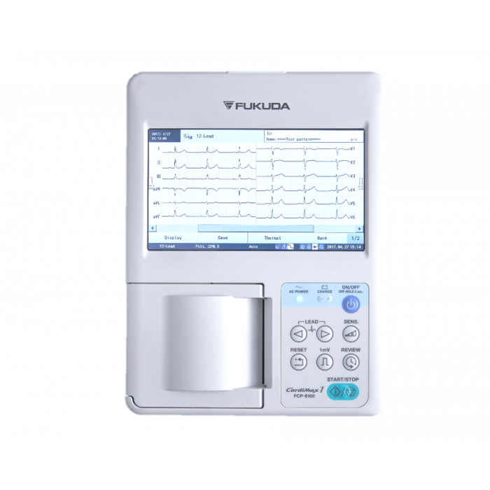 The FCP-8100/FX-8100 is one of the smallest and lightest ECG devices on the market. Its large 7-inch widescreen LCD display provides unparalleled ease of use for checking patient data, as well as clear, accurate ECG shapes.