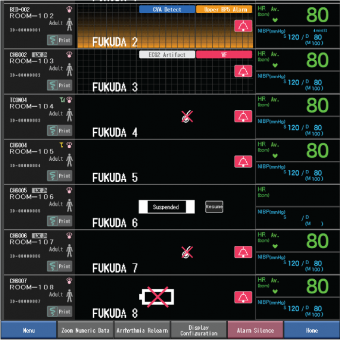 Central Station monitor, "DS-8900". Thanks to the 26-inch display and multi-display configuration, all information can be viewed in the blink of an eye. More powerful than its previous models. Thanks to the 26-inch screen, 32 images can be displayed, and thanks to the latest technologies, continuous signals and parameters can be recorded in a maximum of 120 hours (5 days).