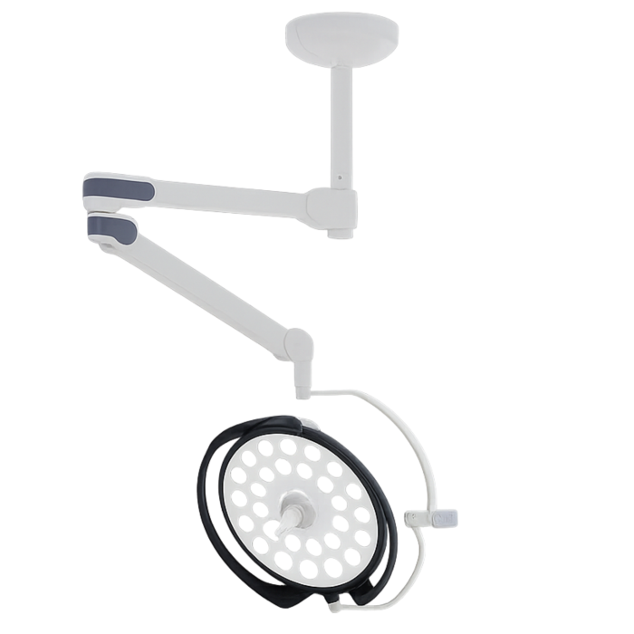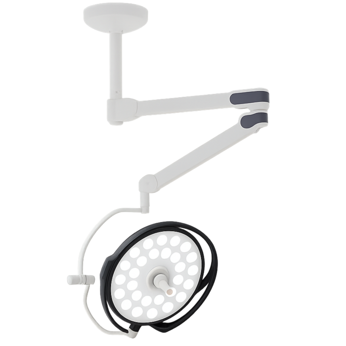 The DL-2D Ceiling Surgical Single Dome Light is a powerful operating room lighting device equipped with 28 LEDs, capable of providing a total illumination of 120,000 lux.