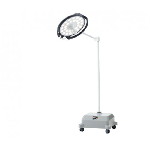 This model with 28 LED lamps has a width of 44 cm and a power of 120,000 lux. Access to all functions is possible thanks to the touch screen. The panel on the stand shows in which mode the device works and the battery capacity in 4 stages. The lamp has 4 wheels, 2 of which have brakes.