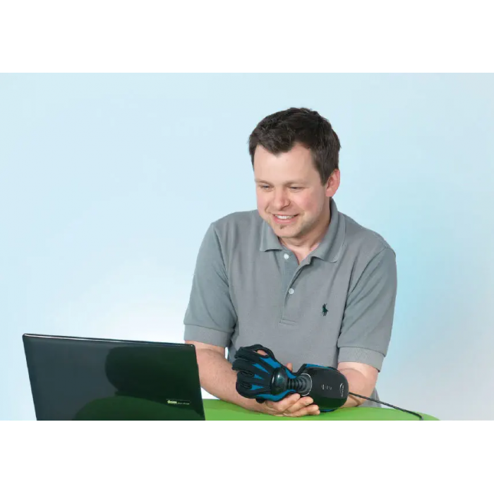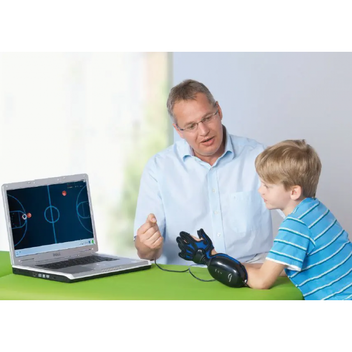 The handtutor ™ physical and occupational therapy product provides functional training of fine motor skills of the fingers and wrist and rehabilitation of the hand. The system consists of an ergonomic glove and special software for physiotherapy rehabilitation. This allows the therapist to work within the patient's motor capabilities.