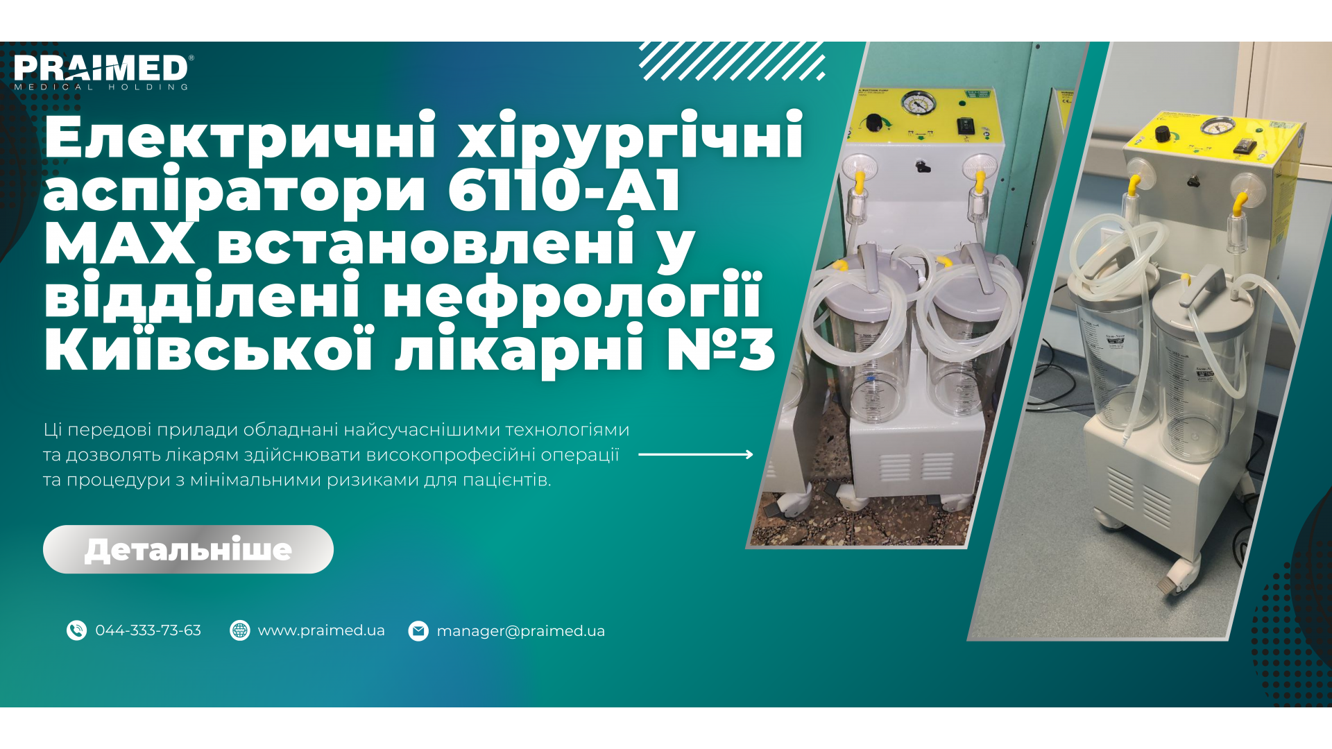 A unique step in the development of medical technologies at Kyiv Hospital No. 3: the Primed Group of Companies has put into operation modern and advanced 6110-A1 MAX Electric Surgical Aspirators!These advanced devices are equipped with the most advanced technologies and will allow doctors to perform highly professional operations and procedures with minimal risks to patients. Thanks to their incre..
